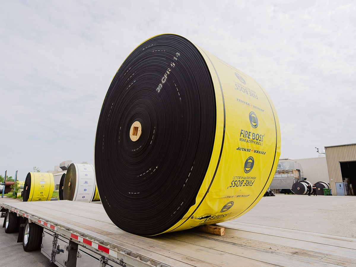 A cobertura FLAME-90 foi projetada para transportadores de superfície e subterrâneos (exceto carvão), com desempenho aprovado segundo a ISO 340. Além da resistência à chama, sua formulação permite operar com materiais de até 100 °C, mantendo excelente resistência à abrasão (até 90 mm³), tornando-a adequada para aplicações que exigem desempenho térmico e durabilidade superior.